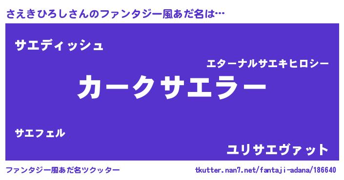 | ヒーロー風カッコイイあだ名 | 『ネオサエキヒロシ』『幻影騎士サエ』 |