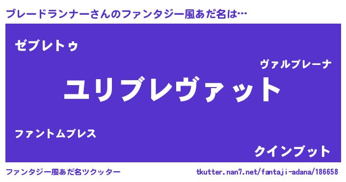| 男性向けラノベタイトル風あだ名 | 『ブレードランナー~年齢イコール彼女いない歴の魔法使い~』 |