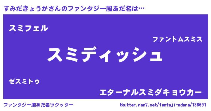 | ヘコむあだ名 | 『すみだきょうか(遠い目)』『すみっふぃ~』 |