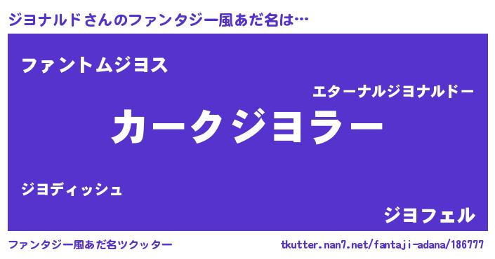 | 男性向けラノベタイトル風あだ名 | 『ジヨナルドに滅ぼされるだけの簡単なお仕事です』 |