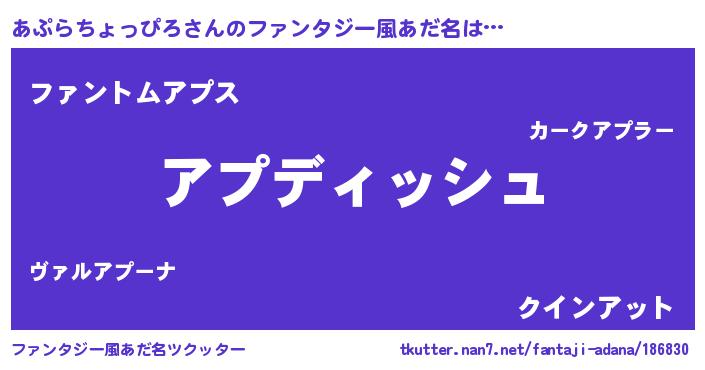 | ヘコむあだ名 | 『あぷらちょっぴろ(遠い目)』『あぷっぺ』 |