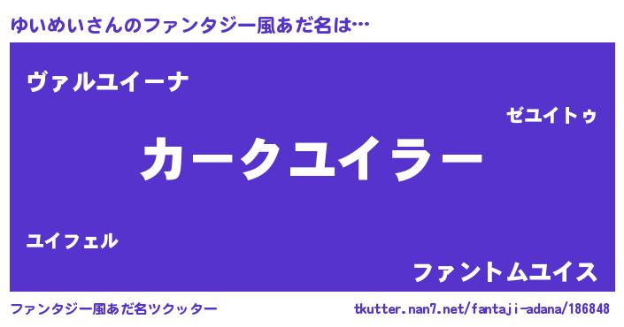 | 欧米人風あだ名 | 『ゆいめい・ステッグマイヤー』 |