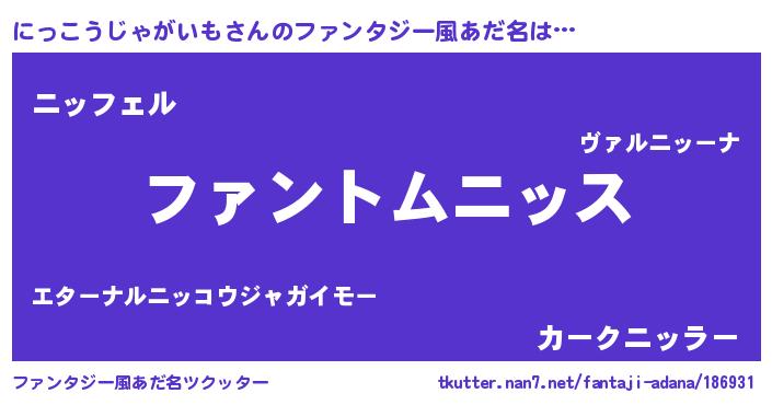 | ポケモン風あだ名 | 『ヒニッコウジャガイモ』『ニッチュウ』 |