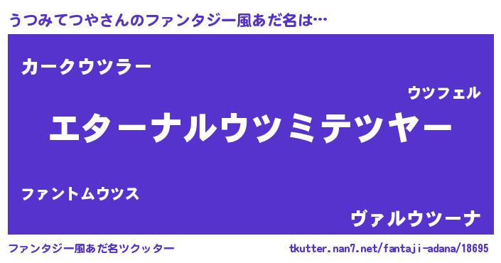 | 男性向けラノベタイトル風あだ名 | 『やはりうつみてつやの青春ラブコメはまちがっている 』 |
