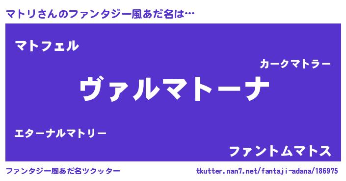 | ヒーロー風カッコイイあだ名 | 『仮面マトダー』『スーパーマトリ』 |