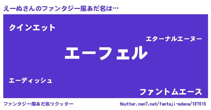 | 男性向けラノベタイトル風あだ名 | 『はたらくえーぬさま!』『えーぬの憂鬱』 |