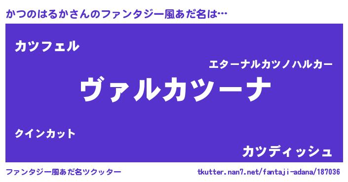 | 男性向けラノベタイトル風あだ名 | 『魔弾の王とかつのはるか』 |
