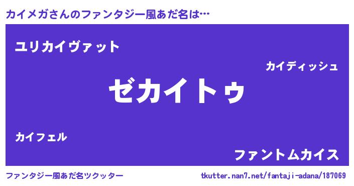 | 男性向けラノベタイトル風あだ名 | 『Re:カイメガから始める異世界生活』 |