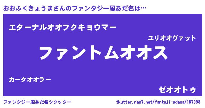 | ヒーロー風カッコイイあだ名 | 『黄金騎士オオ』『ネオオオフクキョウマ』 |