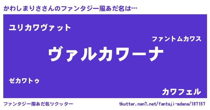 | ポケモン風あだ名 | 『カワゴンZ』『カーワイ』 |