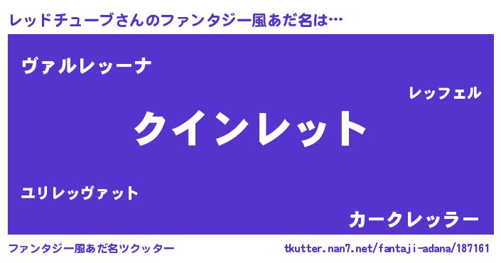 | 女子向けラノベタイトル風あだ名 | 『レッドチューブ夫妻のなれそめ』 |