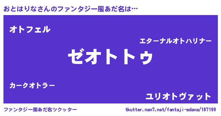 | ヒーロー風カッコイイあだ名 | 『最強戦士オトハリナ』『仮面オトダー』 |