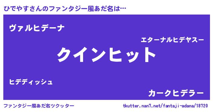 | 男性向けラノベタイトル風あだ名 | 『ひでやすに滅ぼされるだけの簡単なお仕事です』 |