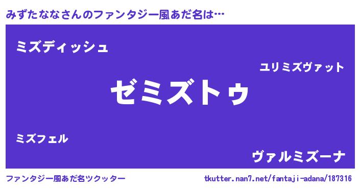 | 意味不明あだ名 | 『自称みずたなな』『永久保存みずたなな』 |