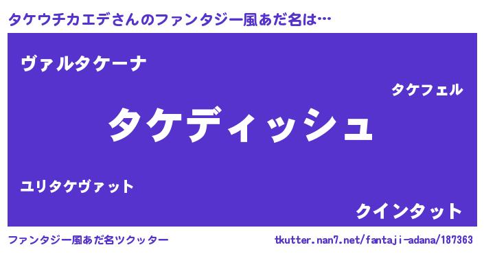 | ヘコむあだ名 | 『タケウチカエデ(小並感)』『タケっふぃ~』 |