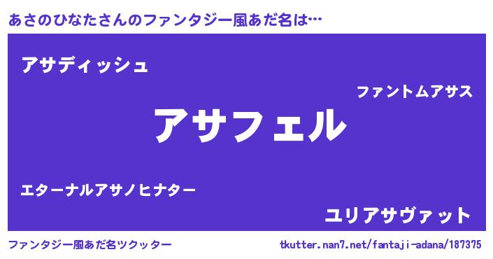 あさのひなたさんのファンタジー風あだ名をツクッター!