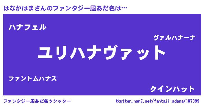 | 男性向けラノベタイトル風あだ名 | 『はなかはま~年齢イコール彼女いない歴の魔法使い~』 |