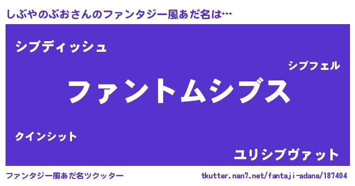 | 欧米人風あだ名 | 『ウサインしぶやのぶお』 |