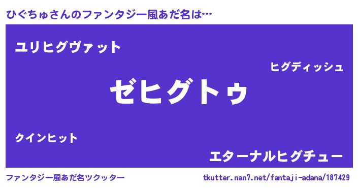 | 意味不明あだ名 | 『自称ひぐちゅ』『もやし科ひぐちゅ属』 |