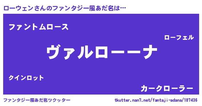 | 男性向けラノベタイトル風あだ名 | 『魔弾の王とローウェン』 |