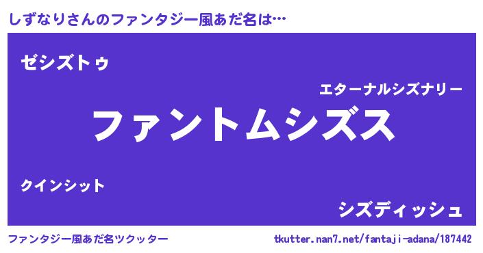 | ポケモン風あだ名 | 『ヒシズナリ』『シズセウス』 |