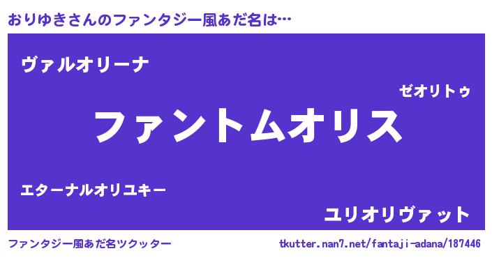 | 男性向けラノベタイトル風あだ名 | 『おりゆきの嫁は女の子じゃないと思った?』 |