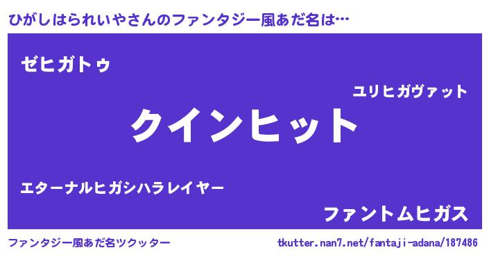| 男性向けラノベタイトル風あだ名 | 『おまえをオタクにしてやるから、俺をひがしはられいやにしてくれ! 』 |