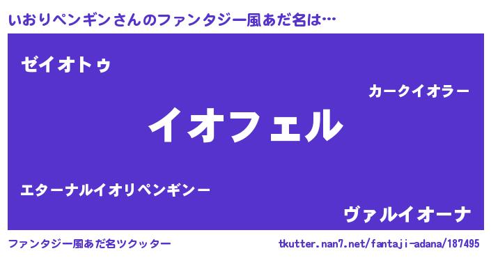 | 男性向けラノベタイトル風あだ名 | 『イオリペンギンアートオンライン』 |