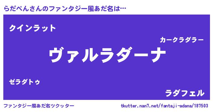 | 意味不明あだ名 | 『住所不定無職らだぺん(41歳)』 |