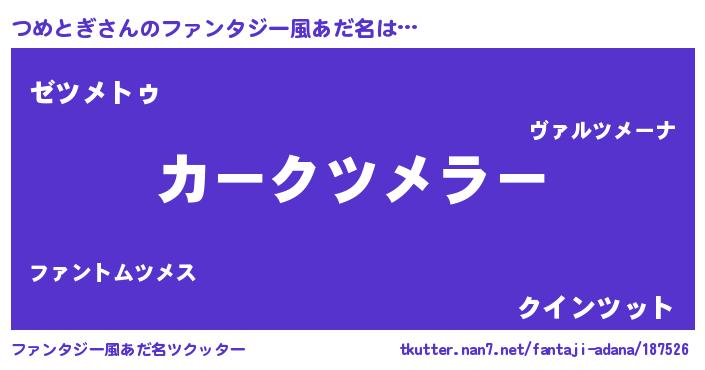 | 伝説のあだ名 | 『救世主となる占い師つめとぎ』 |