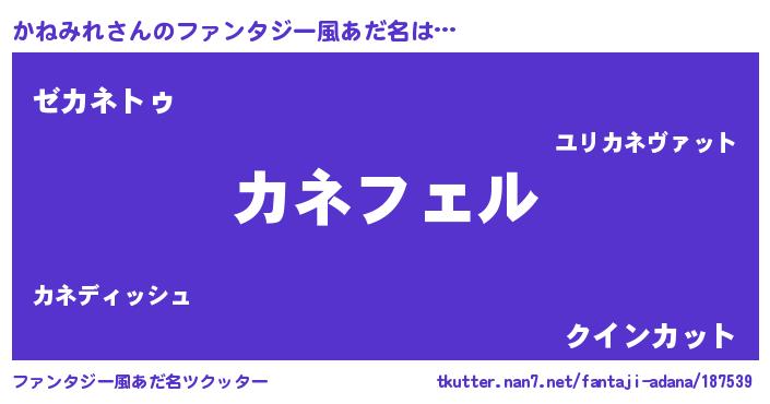| 男性向けラノベタイトル風あだ名 | 『かねみれの憂鬱』『カネミレスレイヤー』 |