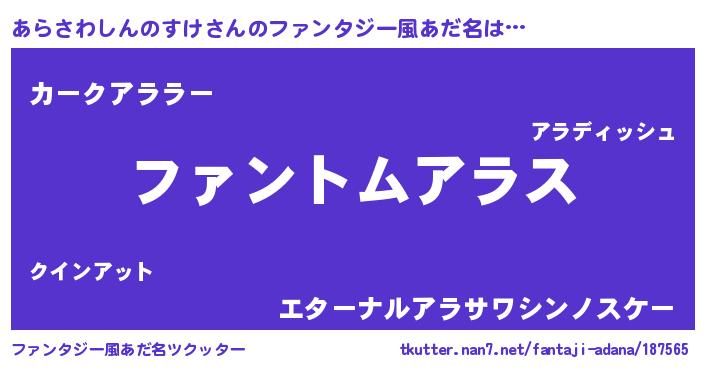 | 意味不明あだ名 | 『とにかく怪しいあらさわしんのすけ』 |