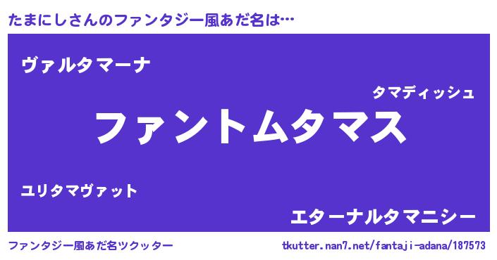 | 男性向けラノベタイトル風あだ名 | 『たまにしの嫁は女の子じゃないと思った?』 |