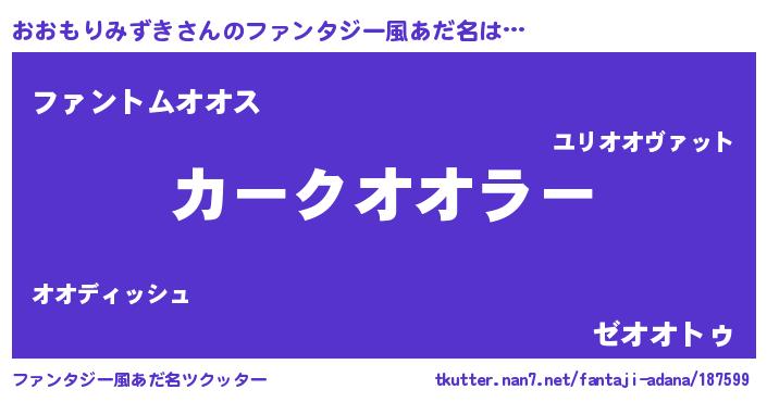 | ヒーロー風カッコイイあだ名 | 『幻影騎士オオ』『ネオオオモリミズキ』 |