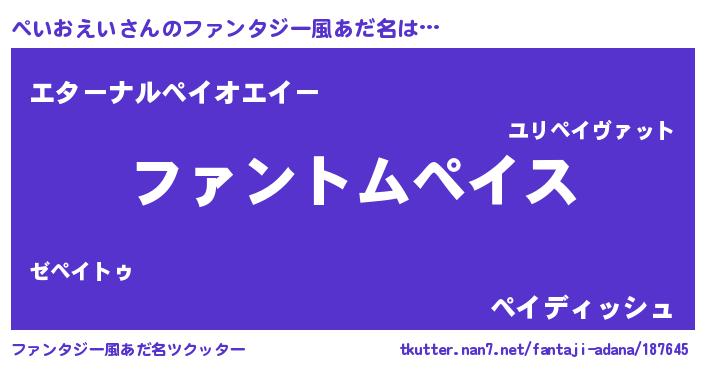 | 意味不明あだ名 | 『とにかく怪しいぺいおえい』 |