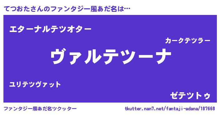 | 男性向けラノベタイトル風あだ名 | 『魔弾の王とてつおた』『緋弾のテツオタ』 |