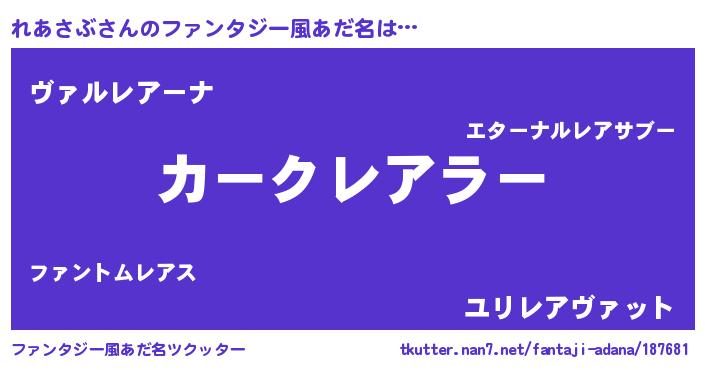 | ヒーロー風カッコイイあだ名 | 『仮面レアダー』『ウルトラれあさぶマン』 |