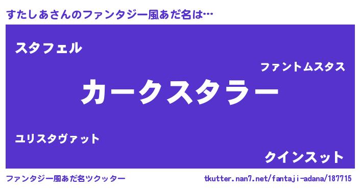 | ヒーロー風カッコイイあだ名 | 『スーパースタシア』『暗黒騎士スタ』 |