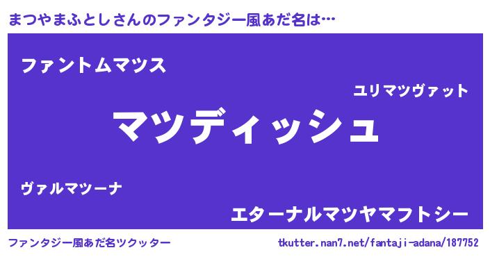 | ヘコむあだ名 | 『まつやまふとし(笑)』『まつぷりん』 |