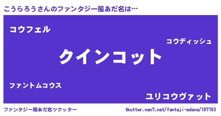 | 伝説のあだ名 | 『救世主となる錬金術士こうらろう』 |
