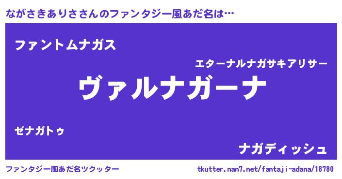 | 女子向けラノベタイトル風あだ名 | 『乙女ゲームの破滅フラグしかない悪役ながさきありさに転生してしまった…』 |