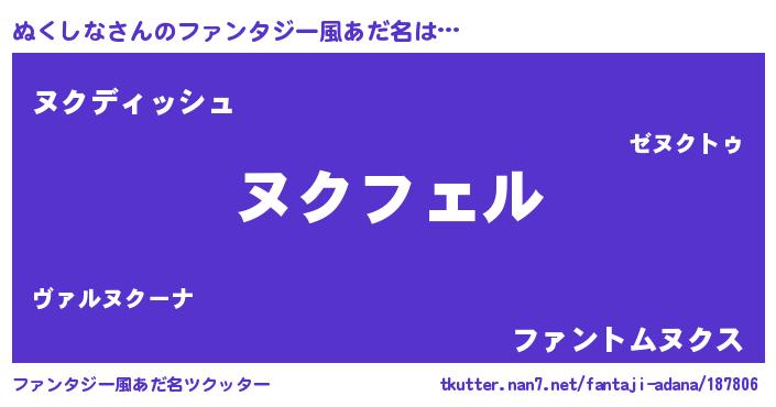 ぬくしなさんのファンタジー風あだ名をツクッター!