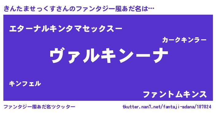 | 意味不明あだ名 | 『住所不定無職きんたませっくす(1歳)』 |
