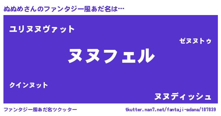 ぬぬめさんのファンタジー風あだ名をツクッター!
