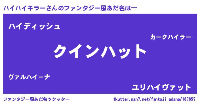 | 男性向けラノベタイトル風あだ名 | 『ノーゲーム・ノーハイハイキラー』 |