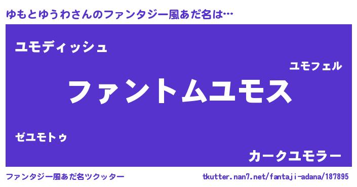 | 男性向けラノベタイトル風あだ名 | 『ダンジョンにゆもとゆうわを求めるのは間違っているだろうか』 |
