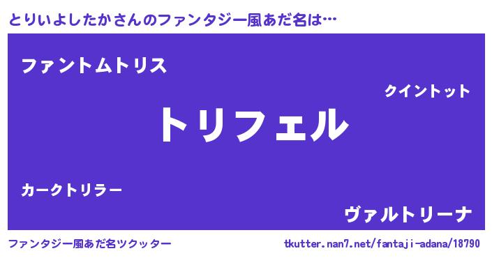 | 男性向けラノベタイトル風あだ名 | 『とりいよしたかに滅ぼされるだけの簡単なお仕事です』 |