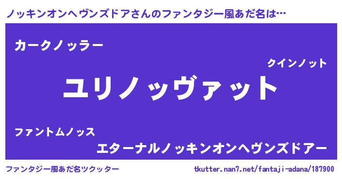 | 男性向けラノベタイトル風あだ名 | 『ノッキンオンヘヴンズドアスレイヤー』 |