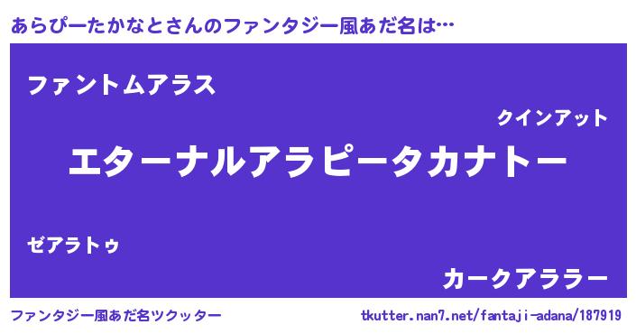 | 意味不明あだ名 | 『あらぴーたかなとフォーエバー』 |