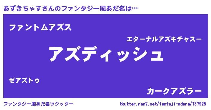 | ヒーロー風カッコイイあだ名 | 『ネオアズキチャス』『炎刃騎士アズ』 |